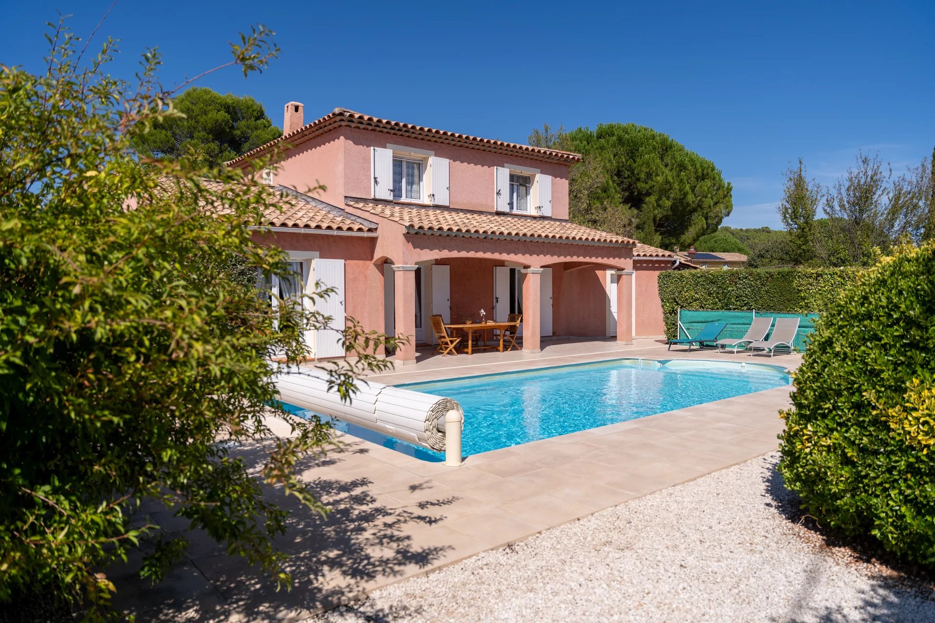 Environnement résidentiel pour cette agréable villa bien agencée de 143 m² environ avec 5 chbres . Séjour lumineux ouvert sur l'extérieur et jolie terrasse semie couverte face a la piscine. La cuisine est indépendante avec acces sur l'exterieur, équipée. Le terrain est payager et clos. Belle pscine de 8x4. Abri voitures, garage. Quartier calme. Proche commodités. Votre villa en Provence